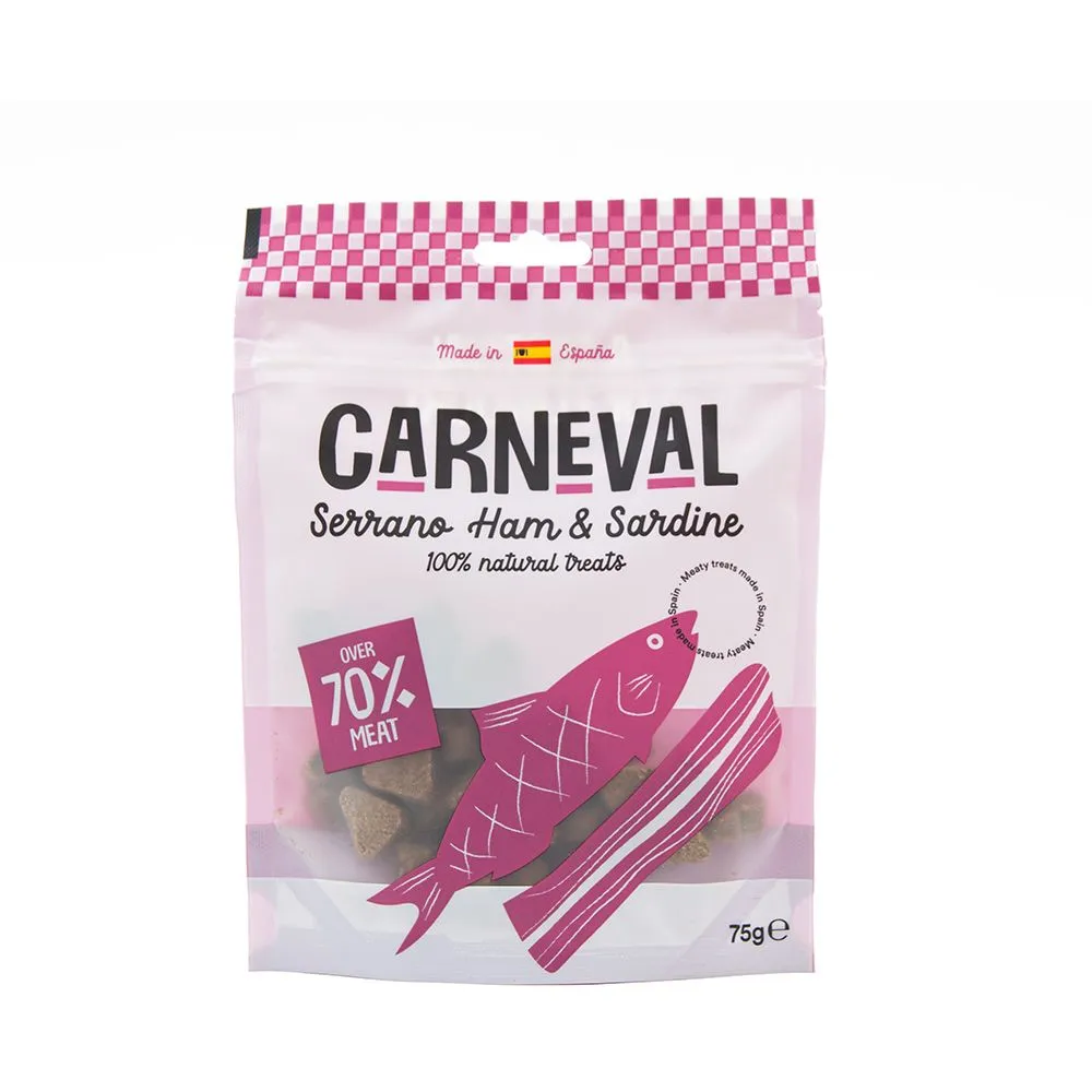 Made in Spain using only 100% natural ingredients, this range of meaty treats offers something exciting to owners that is not only healthy but also incredibly palatable! The CARNEVAL range is made with serrano ham (a natural, air cured ham) in every treat option, the training treats, and meaty sticks.