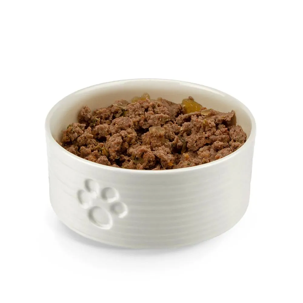 Each easy to feed pot contains an incredibly high level of digestible fresh meat alongside Green Lipped Mussels that are rich in Omega 3 fatty acids. The range contains a variety of different meat, fish, fruit and vegetables that are all carefully selected for their benefits. The added Blueberries, Apples and Blackberries provide a healthy dose of antioxidants and essential fibre for proper stool function. Sweet Potato and Pumpkin provide a great source of slow-release carbohydrate to keep your dog going about their day. Each pot is made with 100% recyclable packaging, so you can keep your dog and the planet happy.