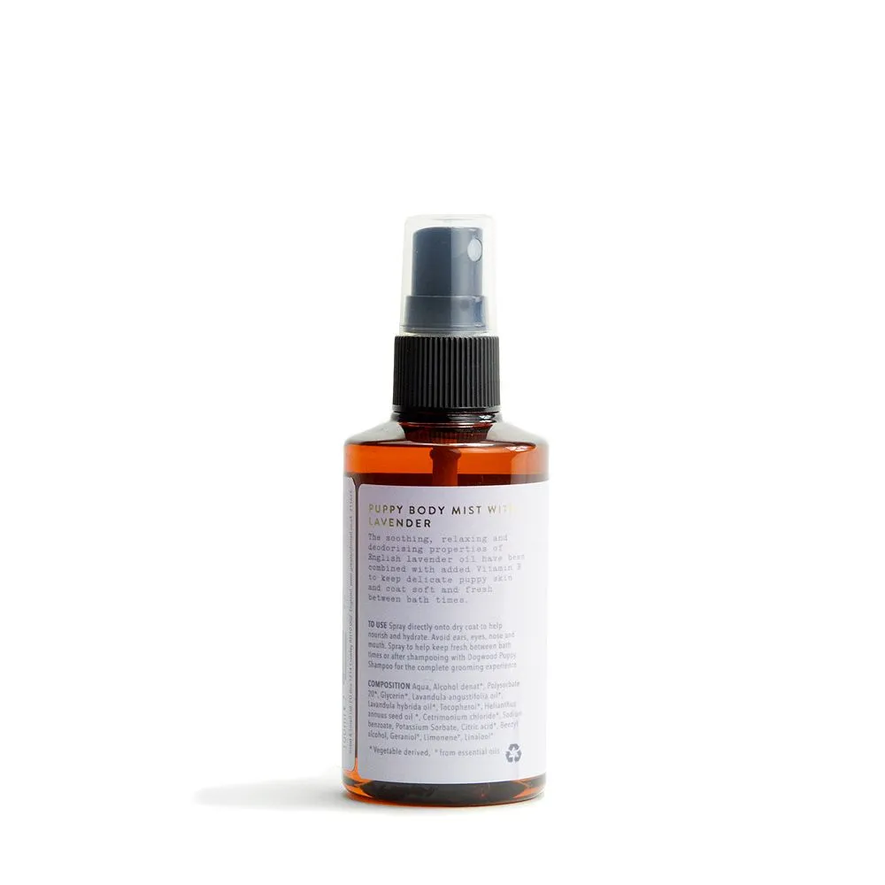 English lavender oil and Vitamin E combine in this mild and gentle body mist created especially for puppies. Ideal to help freshen up your puppy’s coat in between baths, the delicate mist nourishes skin and promotes a healthy, shiny and glossy coat.