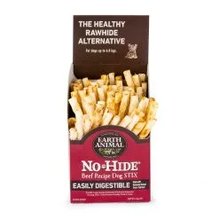 Earth Animal No Hide is an easily digestible and full of flavour, healthy hide chew alternative. Wholesome and nutritious, made with humanely raised grass-fed beef. Provide your dog or cat with a long-lasting and healthy chew, to promote healthy teeth and gums whilst keeping your pet entertained whilst at home or on the go.