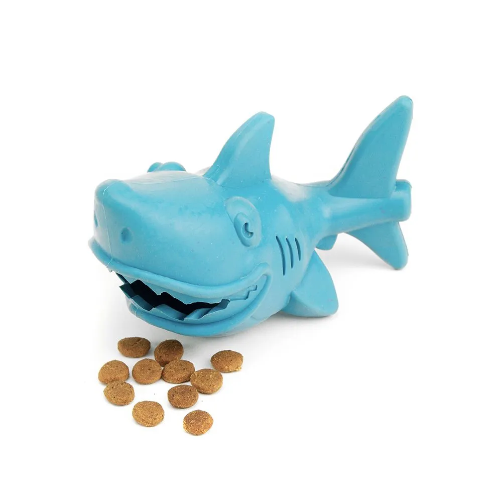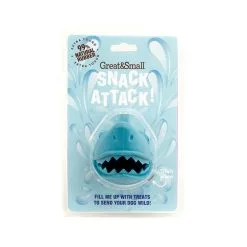 The Great&Small Snack Attack Shark is high natural rubber content makes it tougher and better value than many cheaper alternative rubber toys. Hardy and chew resistant, the 99% natural rubber content is perfect for active dogs and games of fetch and play. The bright blue colour helps the toy stand out even on grass. This high quality rubber toy for dogs is sure to bring hours of fun to dogs and owners alike.
