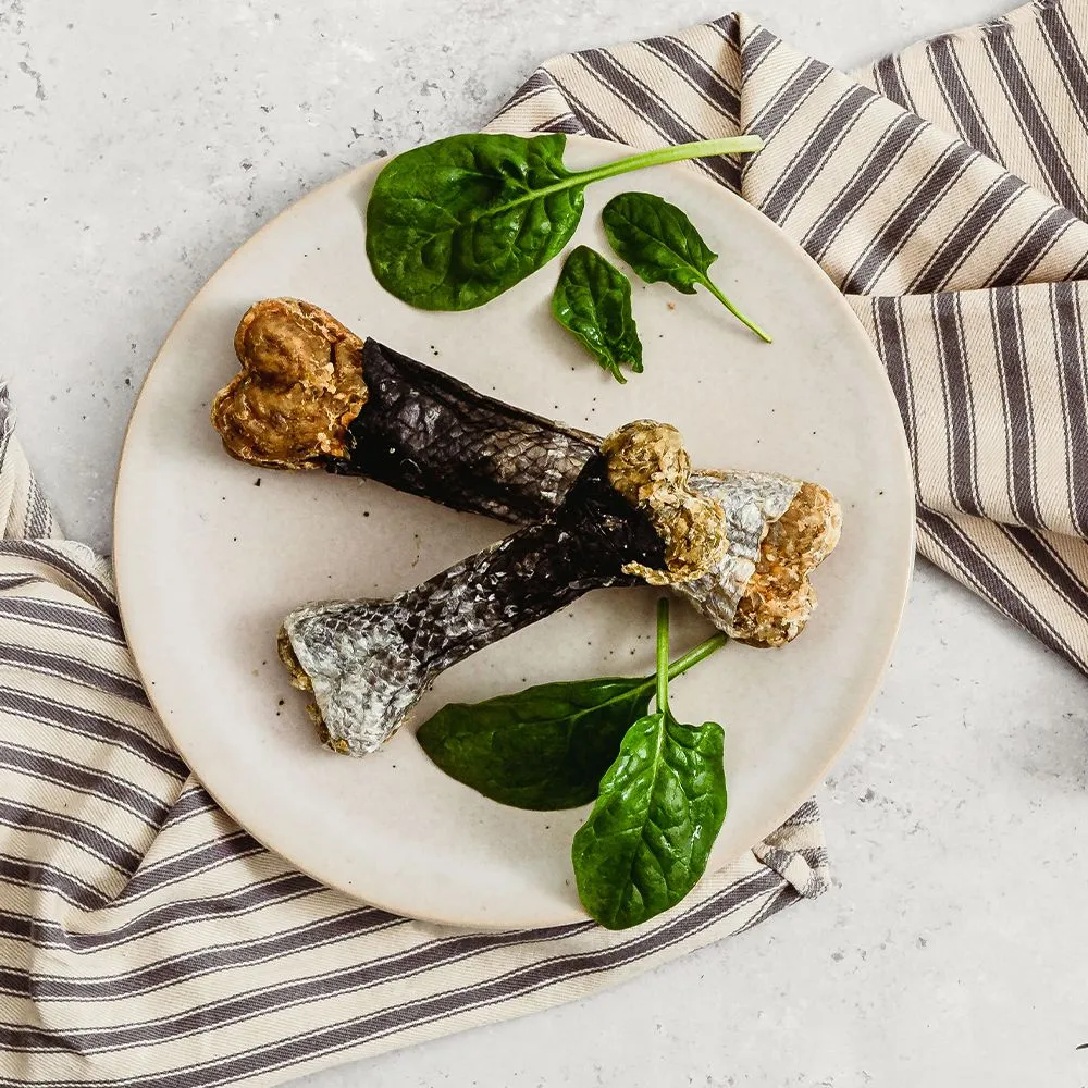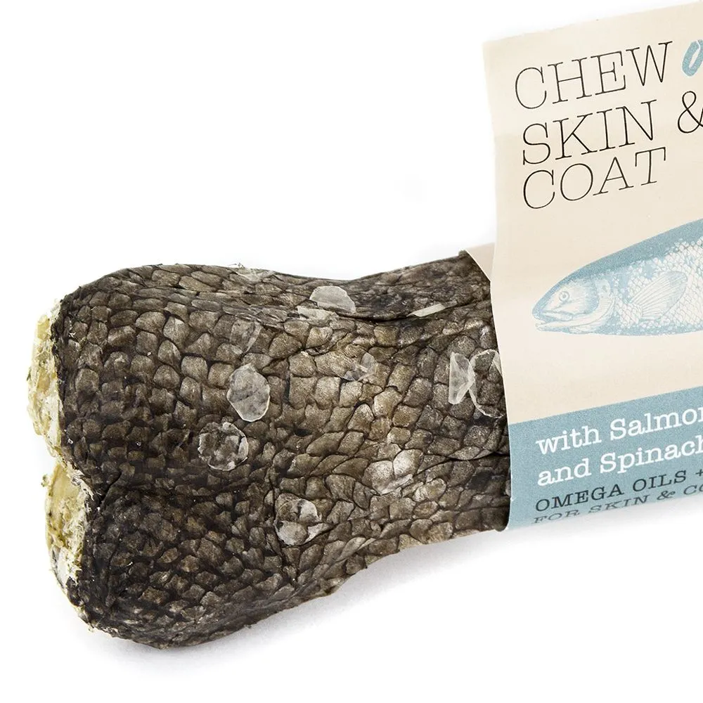Great&Small Chew On Salmon & Spinach is a yummy, tasty, treat for your dog containing delicious rawhide, salmon and spinach for skin and coat care.