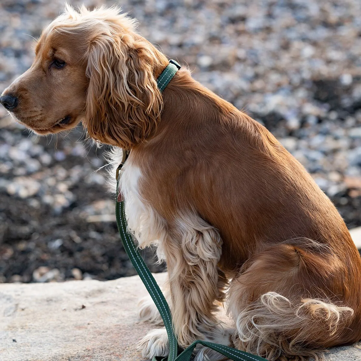 The Great&Small Country Collar Forest Green is made with quality nylon webbing. Weatherproof, strong, soft and durable this adjustable collar is comfortable for your dog.