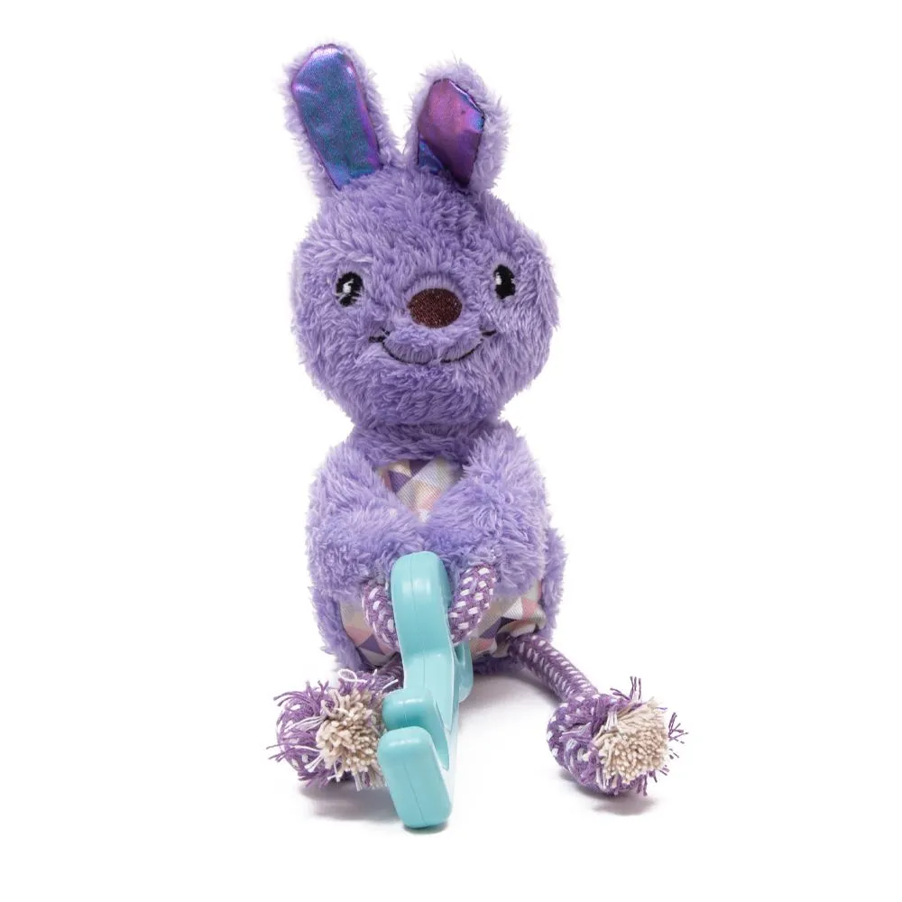 The Great&Small Cuddle Me Knot Keypers Bunny has a durable inner rope core on the inside, with a soft fabric outer shell to provide a much longer-lasting toy!