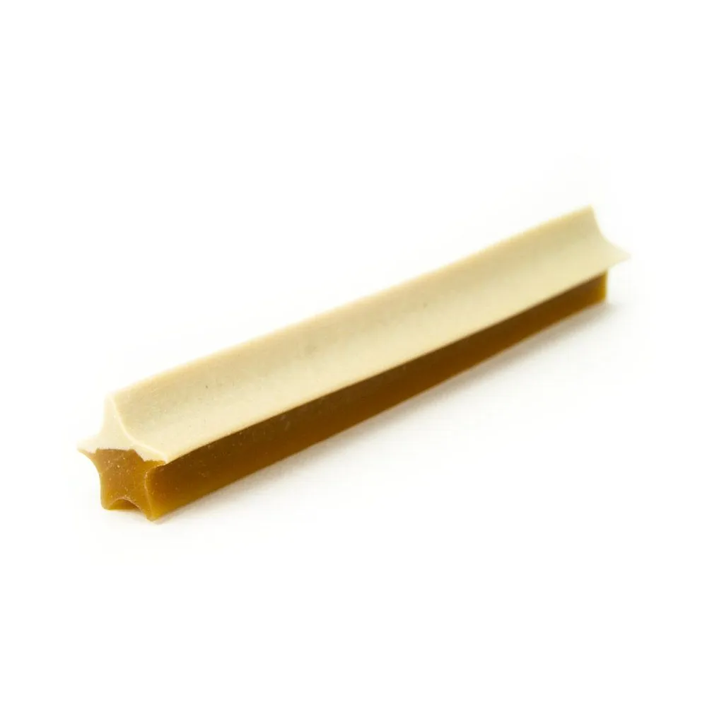 The shape is designed to reduce plaque and tartar buildup and promote fantastic dental health. Plus the special tough shape enables your pooch to keep his paws firmly around his new favourite chew. This is fantastic for keeping that chewing interest! After all better he chews this delicious natural treat rather than the couch…