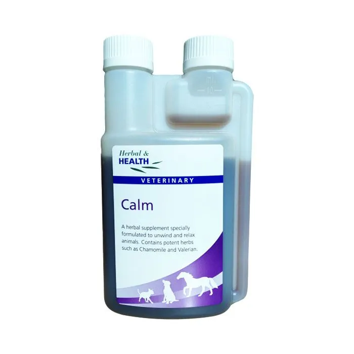 Calm from Herbal & Health is a herbal tincture that contains natural relaxants such as Chamomile, Hops and Valerian. Great for long-term calming of nervous, aggressive, over-excitable pets or as a training aid.
