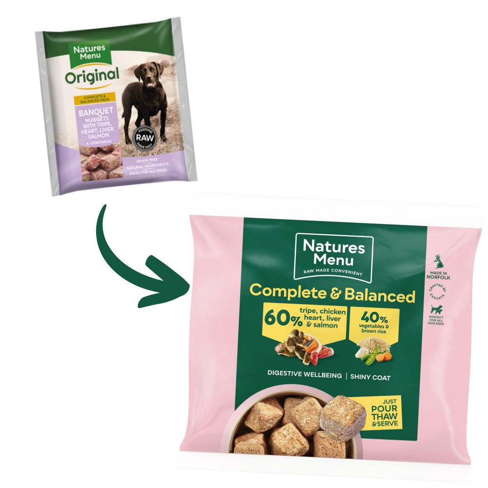Natures Menu Nuggets are made from quality ingredients. Blended into a tasty, nutritious meat portion for home prepared raw meals for dogs.