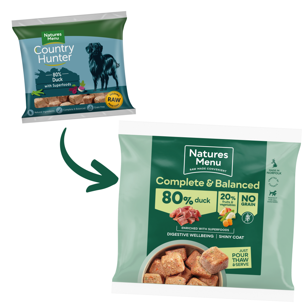 Natures Menu 80/20 Duck is made with 80% Succulent Duck and a delicious blend of plum, apple, peas and root vegetables. These raw superfood nuggets are packed to contain only the highest quality ingredients, made to be nutritionally adequate for a dogs daily nutritional requirements.