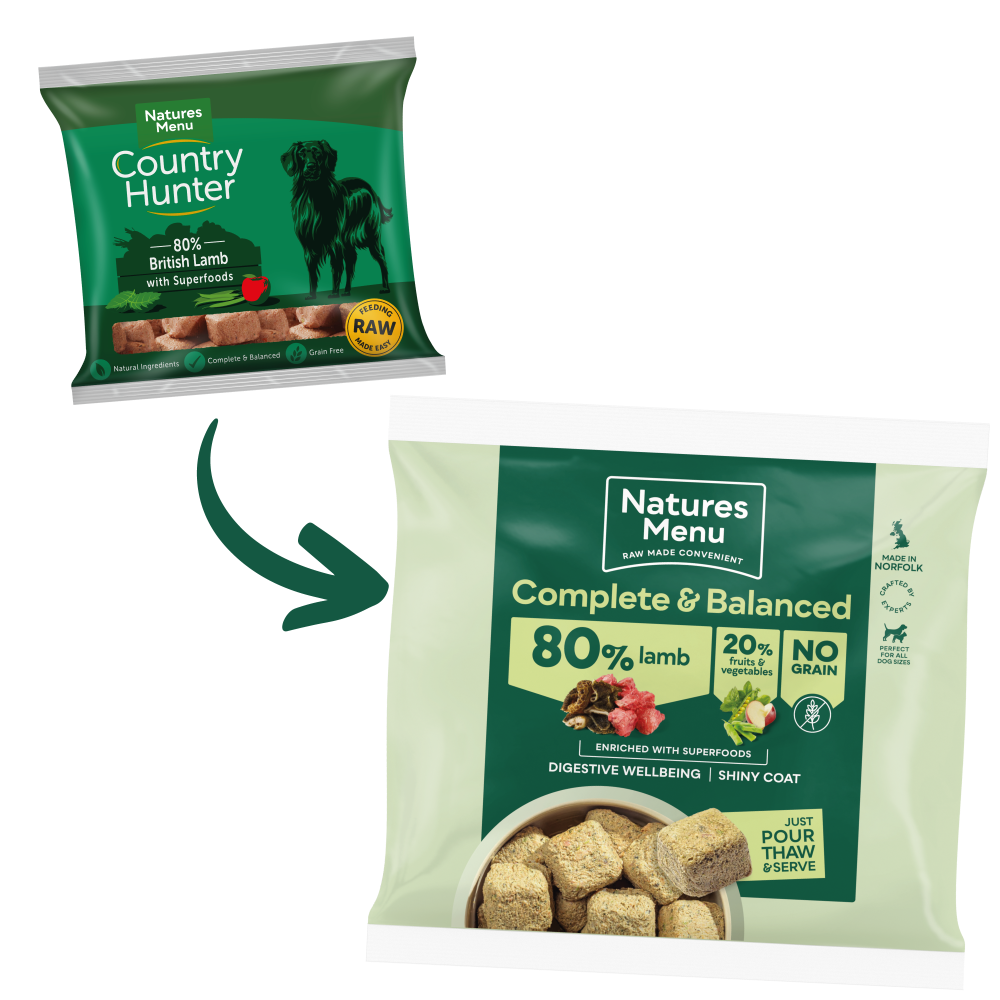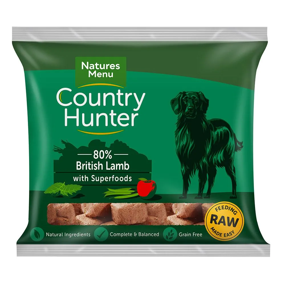 Natures Menu 80/20 Lamb Nuggets are made with 80% locally sourced British Lamb and a delicious blend of mint, peas, and tasty green beans. These raw superfood nuggets contain only the highest quality ingredients, made to be nutritionally adequate for a dogs daily nutritional requirements.
