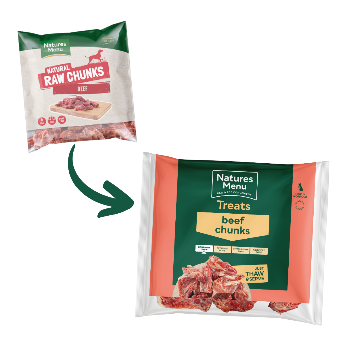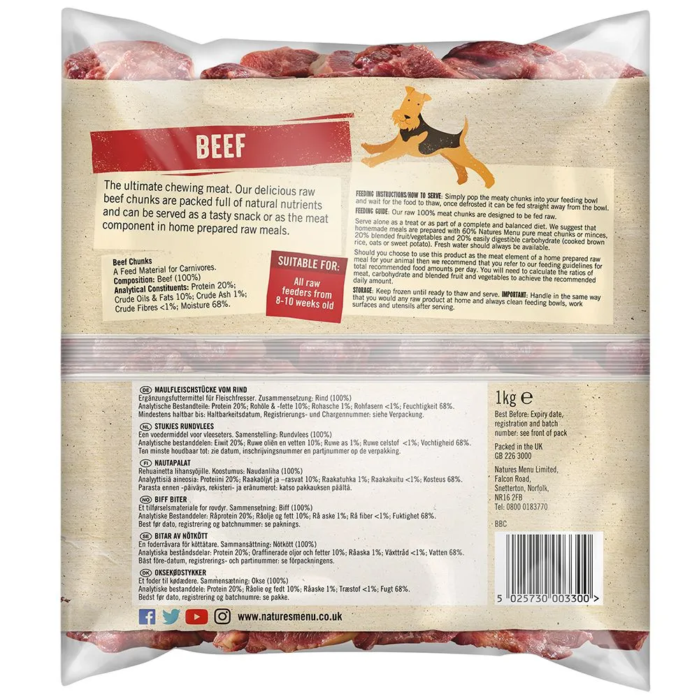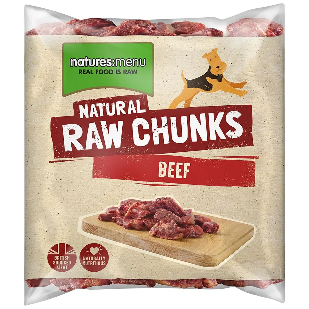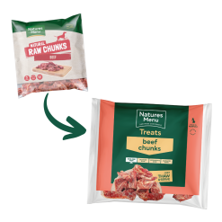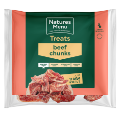 Natures Menu Chunks are designed to be fed as a tasty raw treat or as the meat element within a home prepared raw diet for your dog.