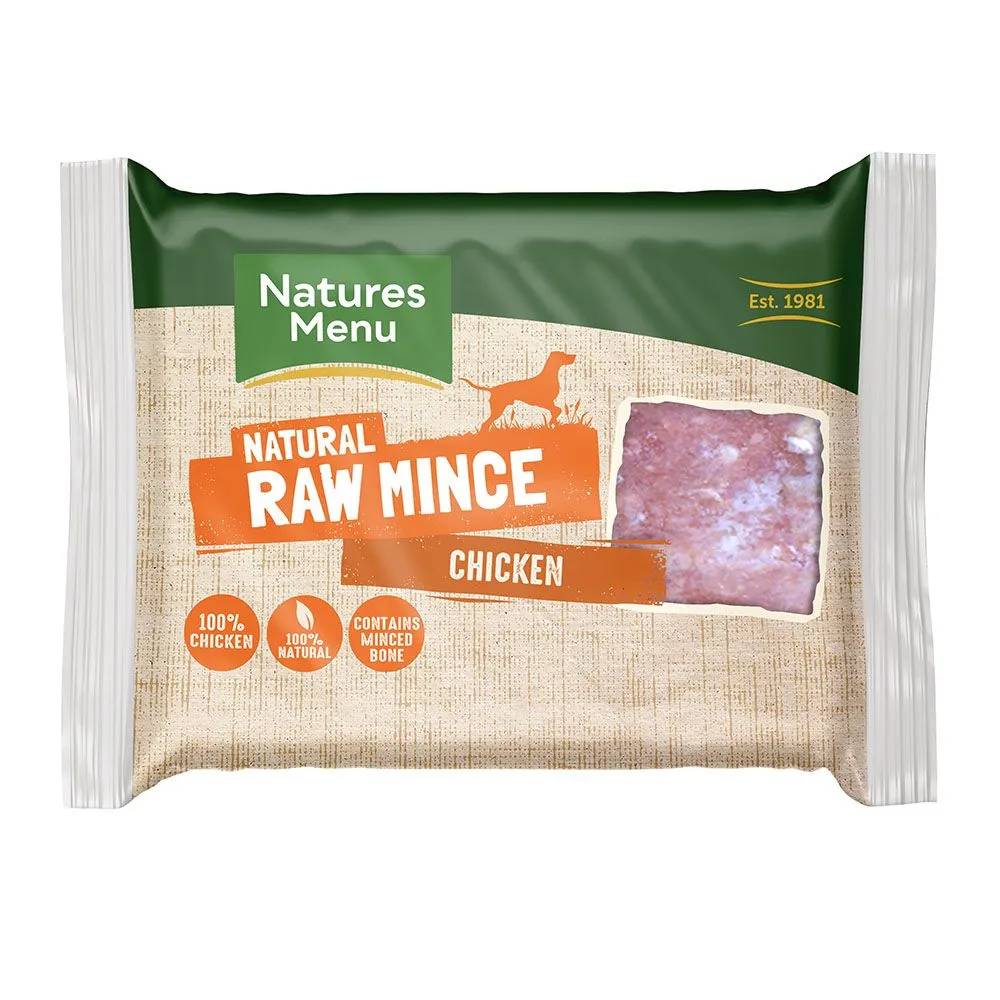 Natures Menu Blocks are made from quality ingredients: minced chicken, blended into a tasty, nutritious meat portion for home prepared raw meals for dogs.