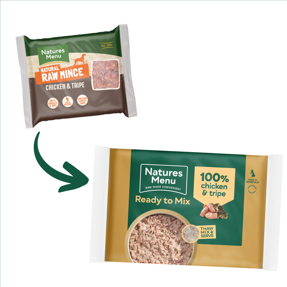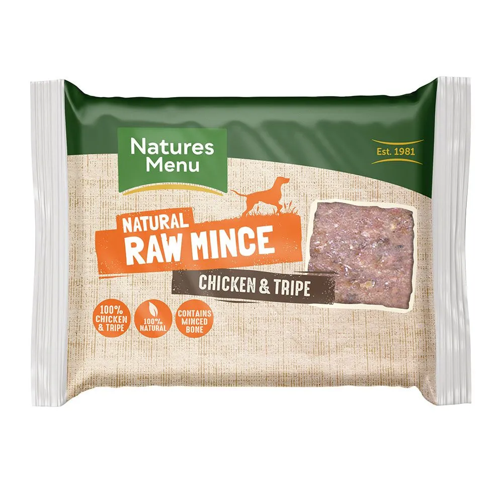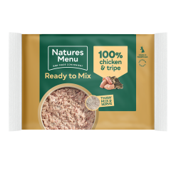 Natures Menu Blocks are made from quality ingredients: minced chicken, blended into a tasty, nutritious meat portion for home prepared raw meals for dogs.