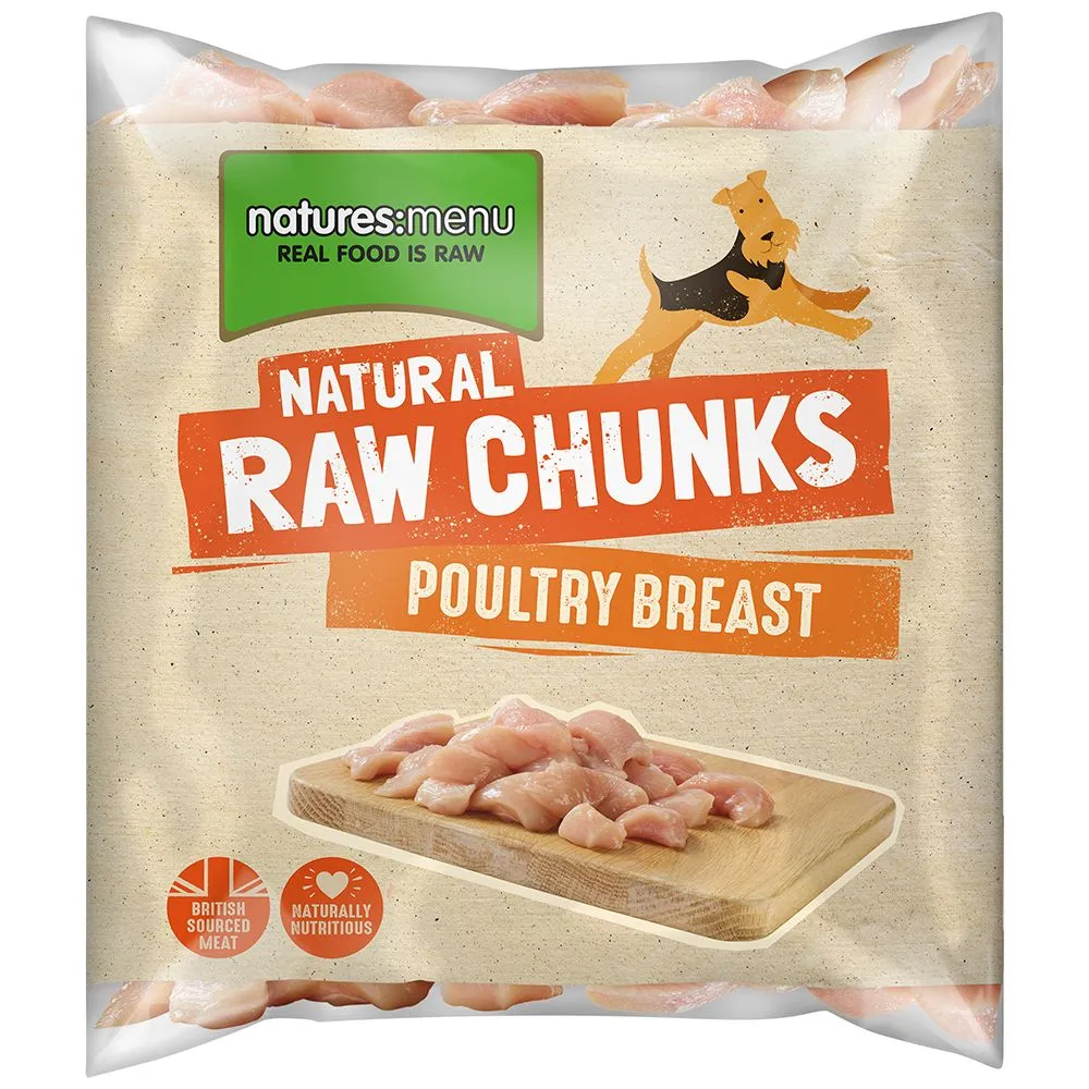 Natures Menu Chunks are designed to be fed as a tasty raw treat or as the meat element within a home prepared raw diet for your dog.