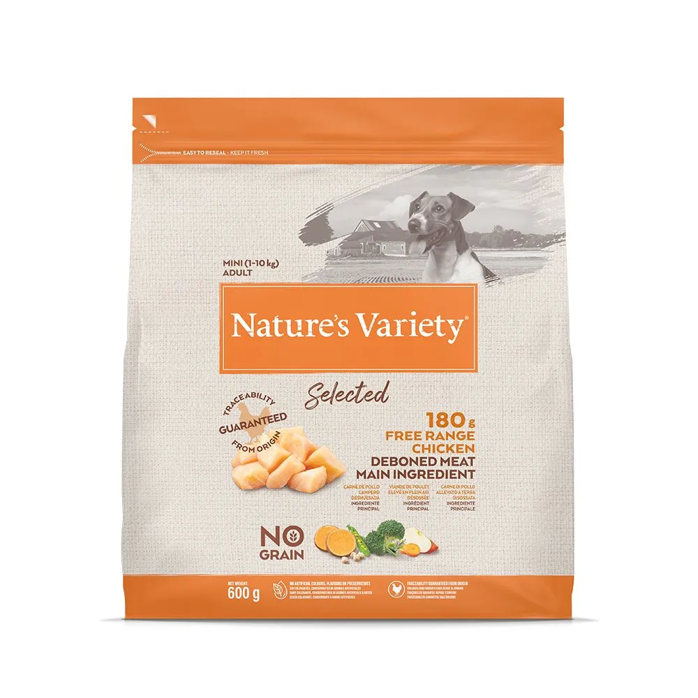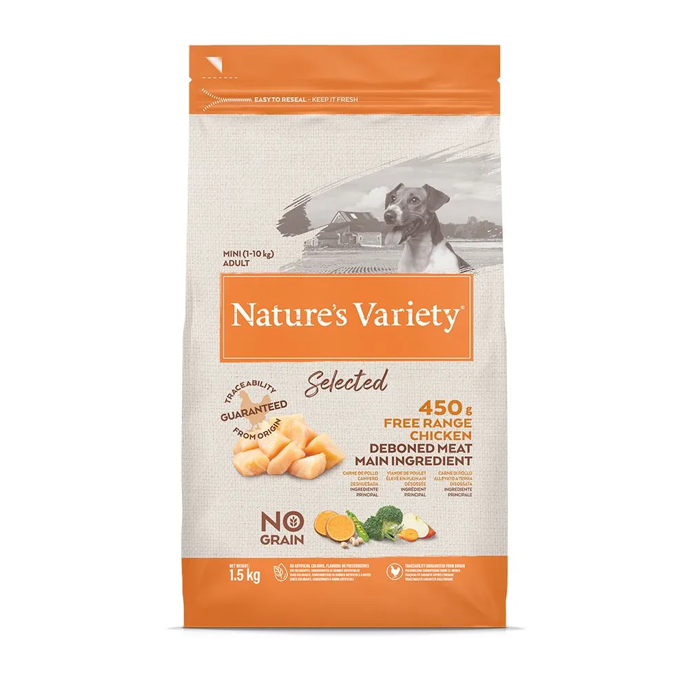 Developed with vets, Nature’s Variety Select dry food for Mini (1-10kg) breed dogs is made with deboned free range chicken and includes nutritious superfood ingredients for optimal health and wellbeing. Specially formulated for smaller dogs’ dietry requirements and with smaller pieces for smaller mouths. Dry with a difference. Nature’s Variety Select Dry ranges use high-meat recipes with premium quality deboned meat as the main ingredient with a blend of wholesome fruit, vegetables and selected superfoods to support your mini dog’s energy levels and vitality.
