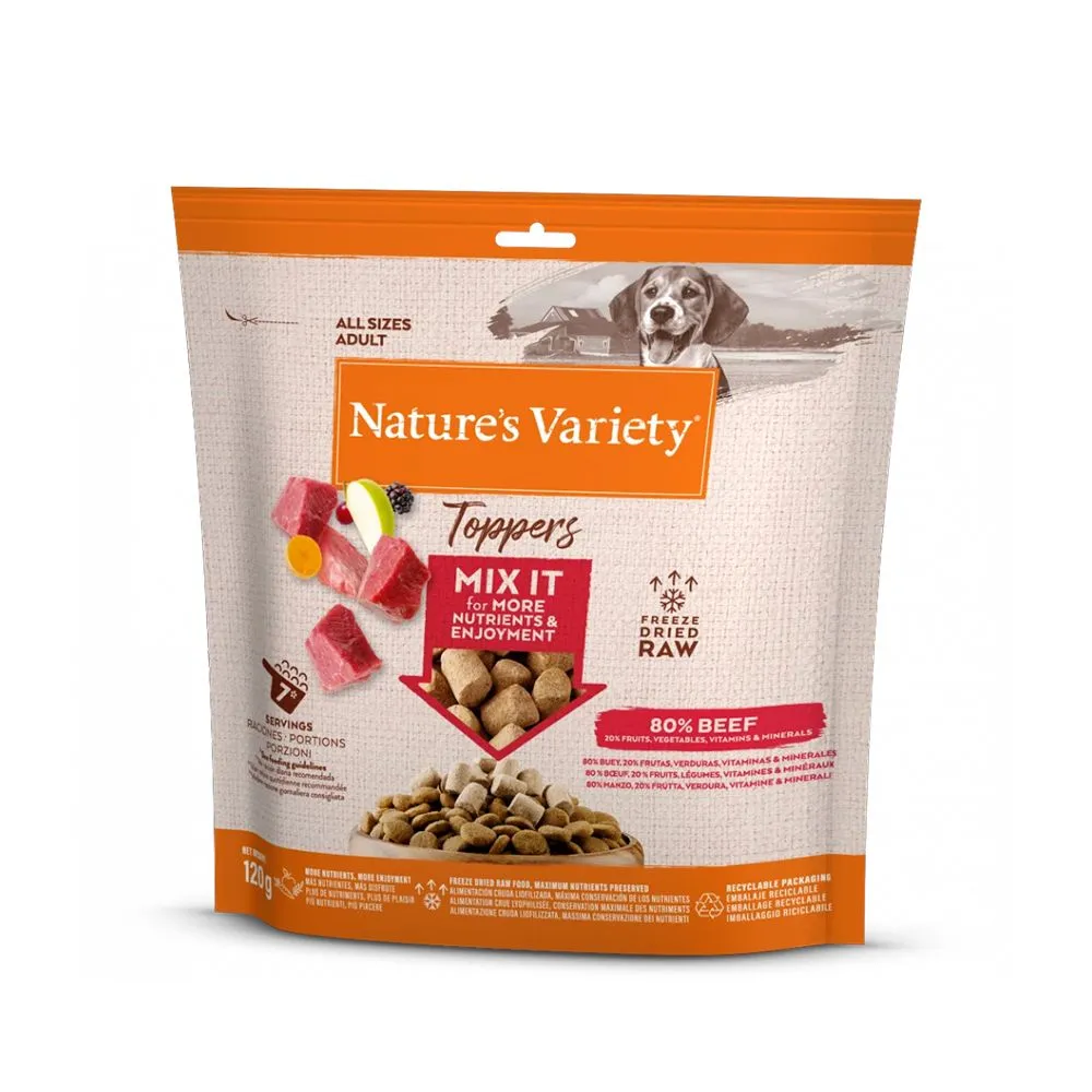 Thanks to its convenient format, they are very easy to use, just pour over your dog’s food, mix it and voila! Never a dull meal with the New Freeze Dried Toppers.