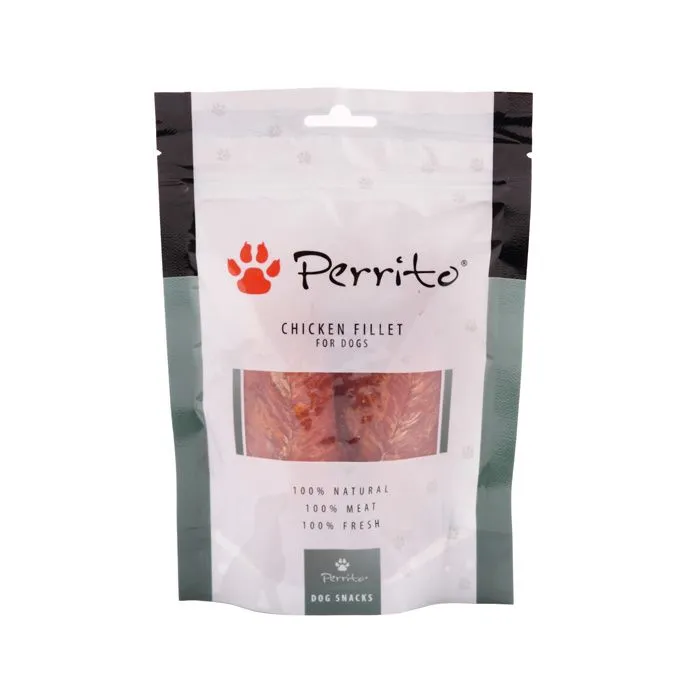 Perrito Chicken Fillets are tasty snacks for your Dog. Perrito Chicken Fillets are a 100% natural tasty and easy to digest snack. Perrito Chicken Fillets have been oven roasted and are made from 100% Chicken and nothing else. These treats are lip smackingly good and sure to be a favourite with your pet.