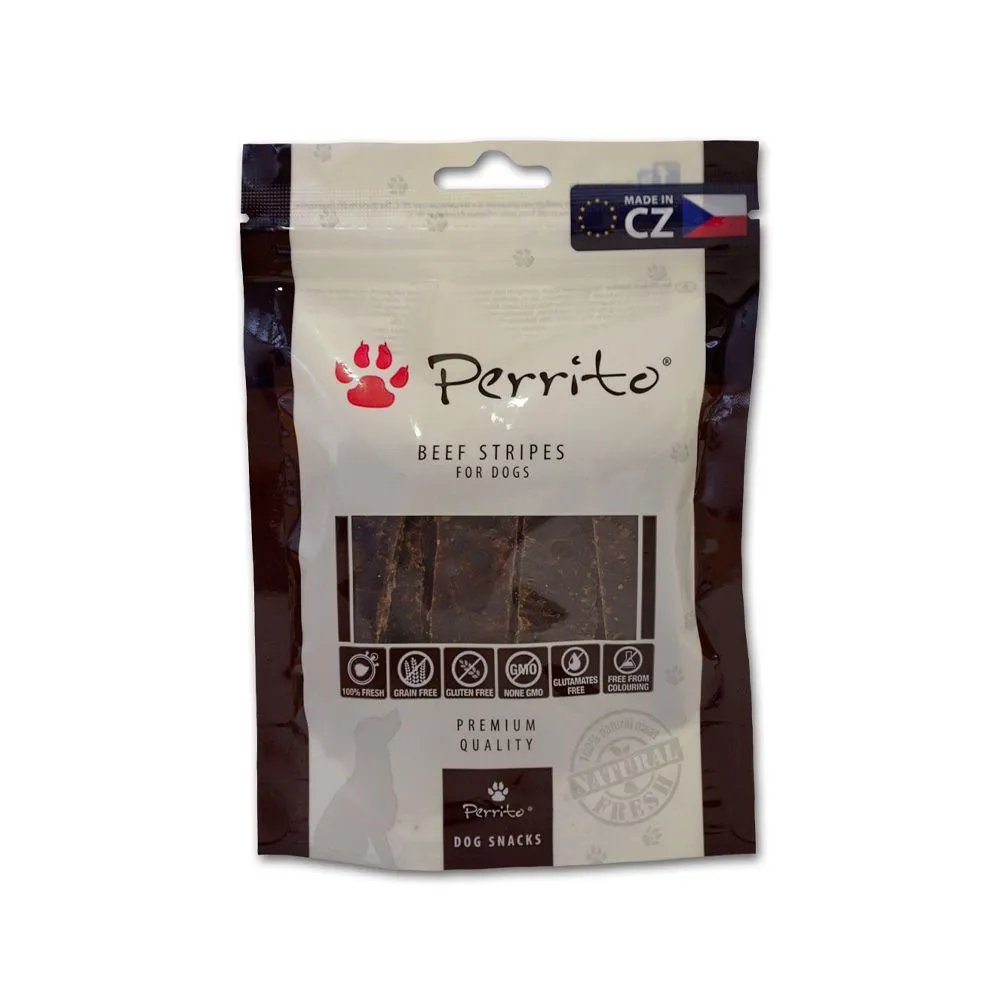 Perrito Beef Stripes are tasty snacks for your Dog. Perrito Beef Stripes contain no artificial colourings and are a 100% natural tasty, easy to digest snack. These treats are lip-smackingly good and sure to be a favourite with your pet.