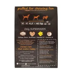 These tasty treats are made with Cottage Cheese, Buckwheat and Coconut Oil! The cottage cheese is extra special as it’s a powerful ingredient that aids proper dental health. The cheese actually neutralizes the acids in the mouth, helping to prevent plaque formation. Don’t worry though this product is lactose-free so suitable for those sensitive dogs out there!