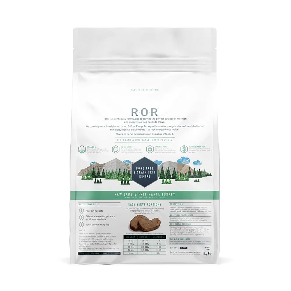Well, you won’t find any unnecessary indigestible bone content here! R.O.R Raw Lamb & Turkey is created using prime cuts of pure protein packed muscle meat. The combination of these lean and digestible meats is perfect for the most active of dogs. Using the power of science, the ratio of calcium and phosphorus needed for healthy bones has been perfectly calculated, without compromising on meat quality.