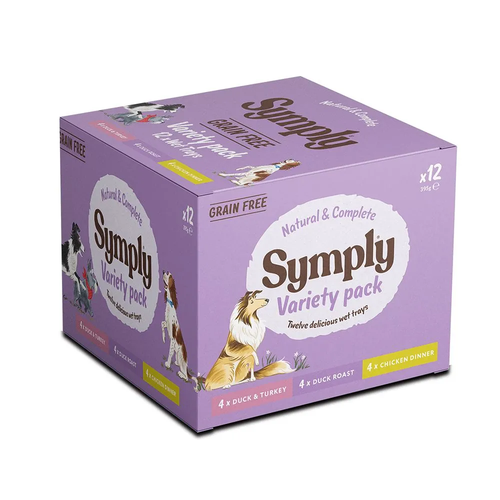 Symply Dog Adult Grain Free Multi Pack (12). Symply have extended their range of high quality wet food which is specially formulated with your dog’s overall health and wellbeing in mind and is now available in this Grain Free Multipack.