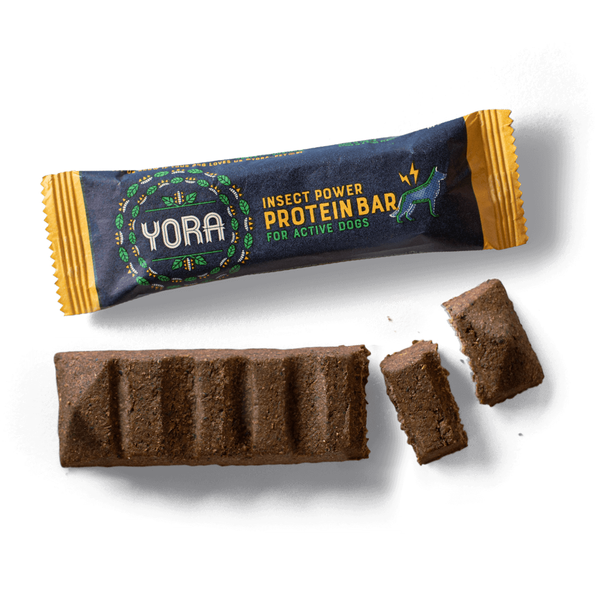 Black soldier fly (Hermetia illucens) grubs have just the right nutritional profile of protein, fats and minerals to allow your pet to flourish and Yora’s clever chefs have combined the high protein bars with carrot, apple and spinach to give your dog a surge of energy after a good run around!