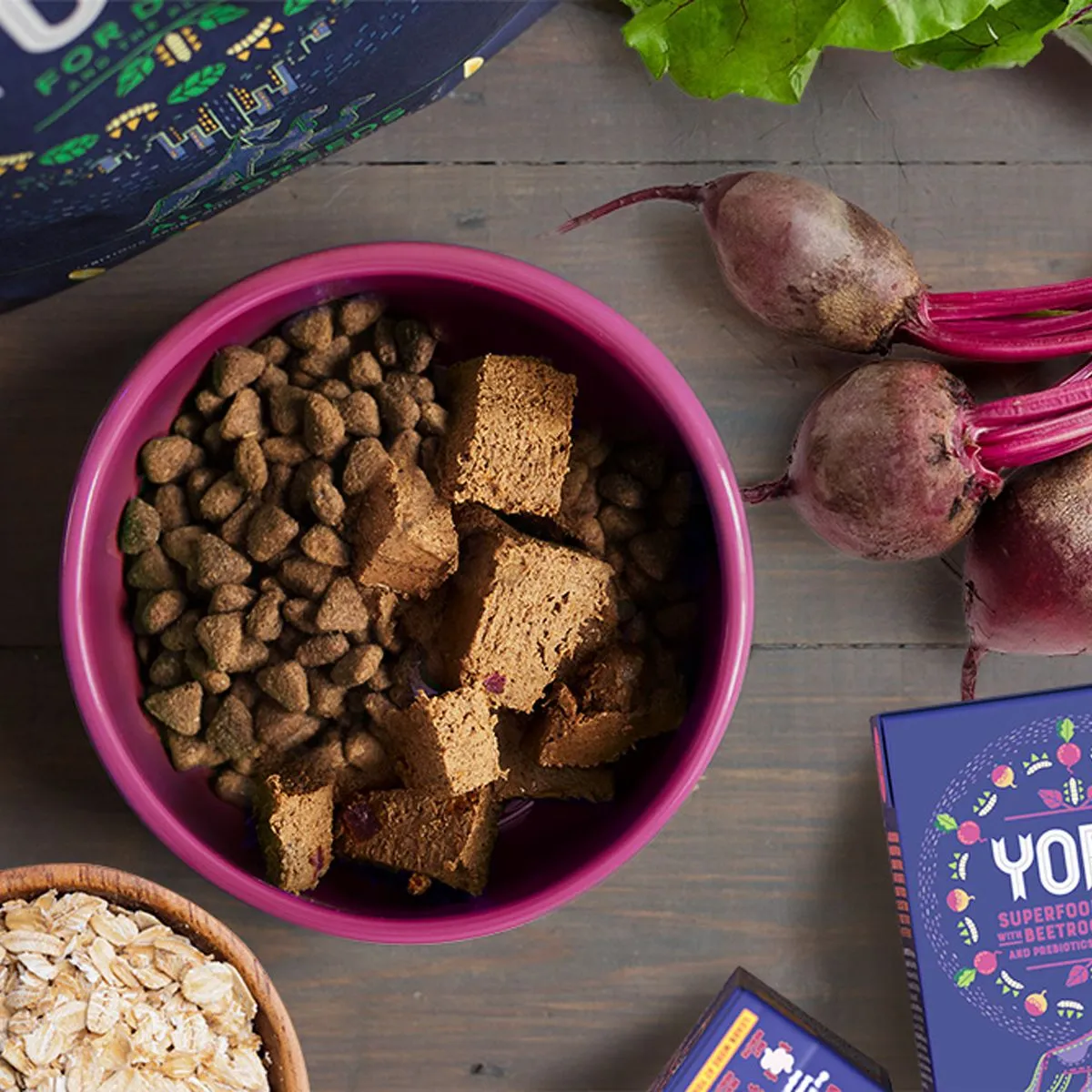 Yora Nutritious Insect food contains beetroot, which provides a great dose of Vitamin A and fibre with super digestible slow-release swede. The added prebiotics aid in supporting your dog’s digestive system and promote healthy stools.